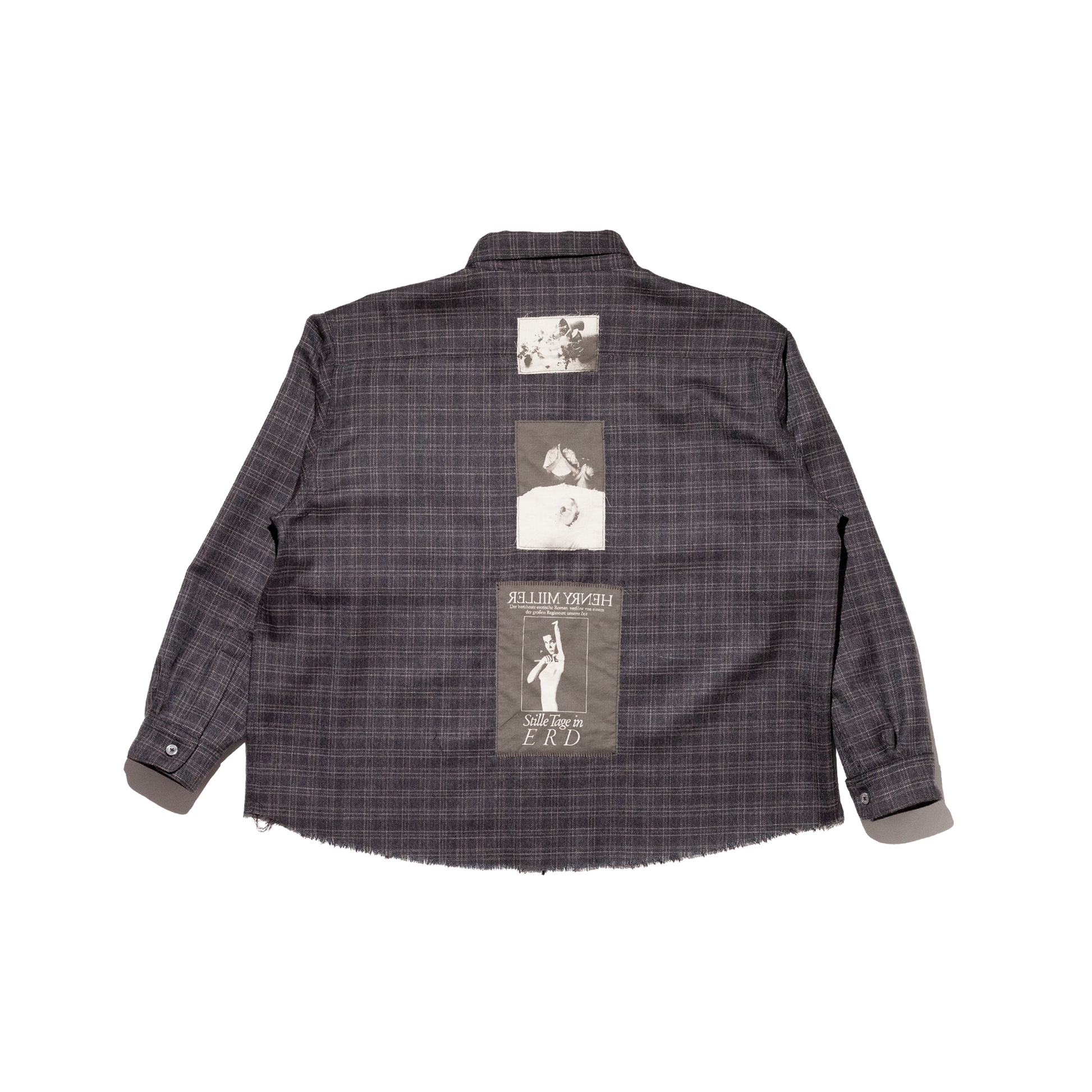 BUTTON DOWN FLANNEL SHIRT IN ITALIAN VIRGIN WOOL. PRINTED ARTWORK PATCHES THROUGHOUT. MADE IN THE USA.